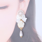 純白の薔薇のカボションを使って、クラシカルでロマンティックな「白薔薇の耳飾り」を制作しました。