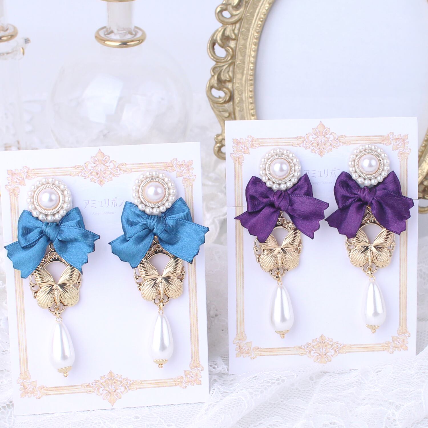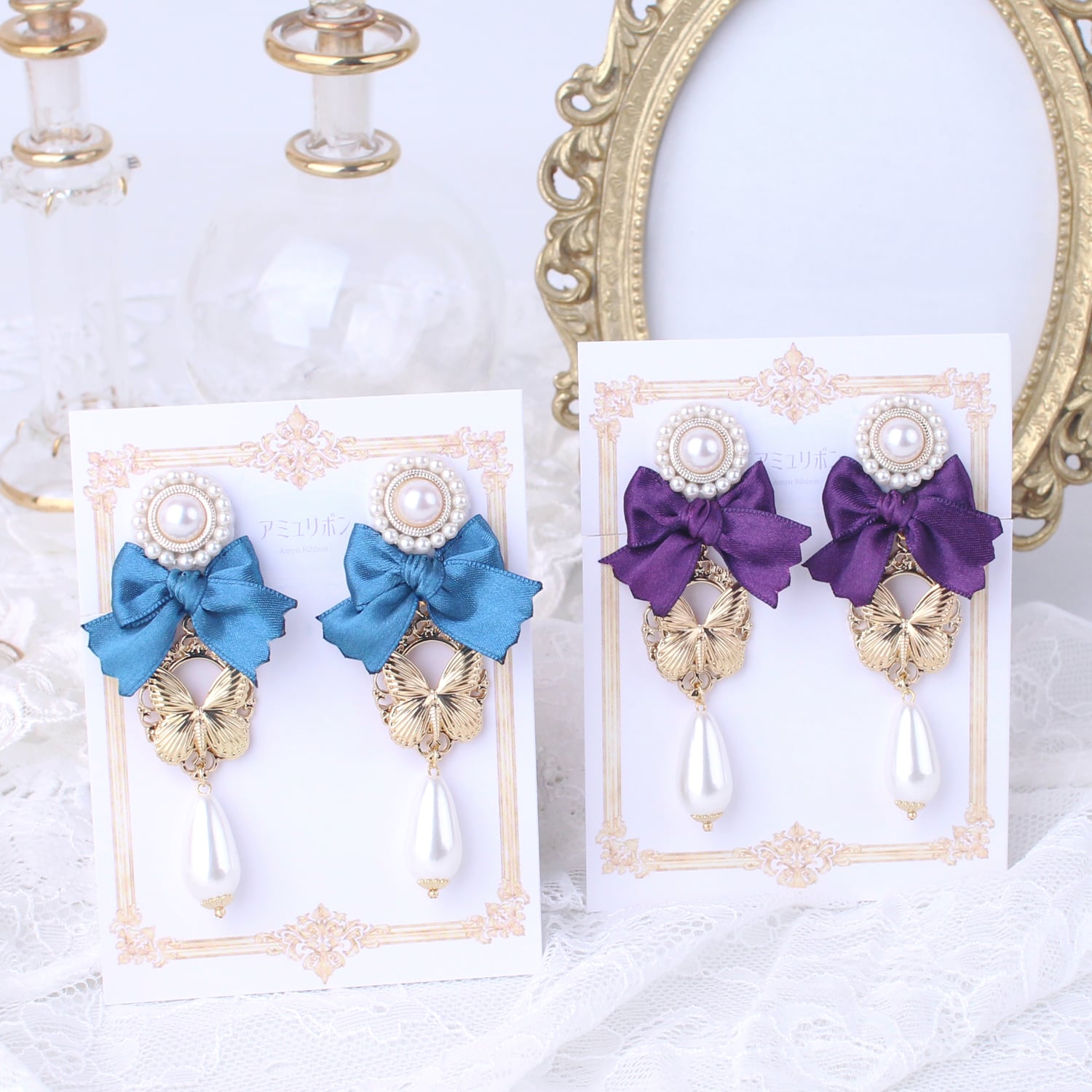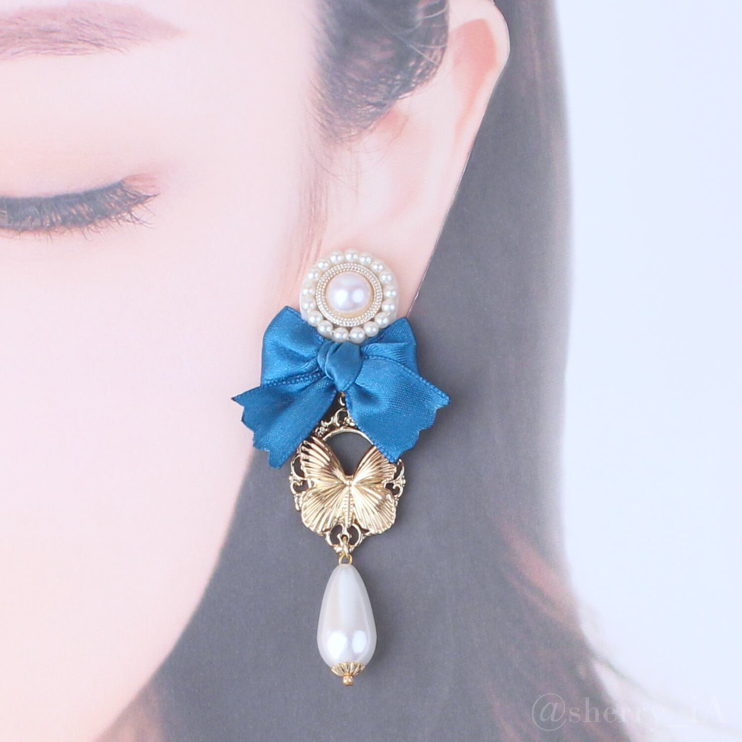 ”蝶の煌めきを纏う”をコンセプトにしたアンティークな蝶のピアス/イヤリングです。