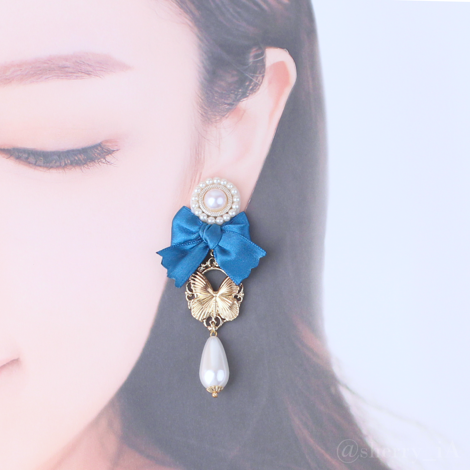 シンプルでありながら蝶の煌めきを纏えるクラシカルな耳飾りが完成しました!