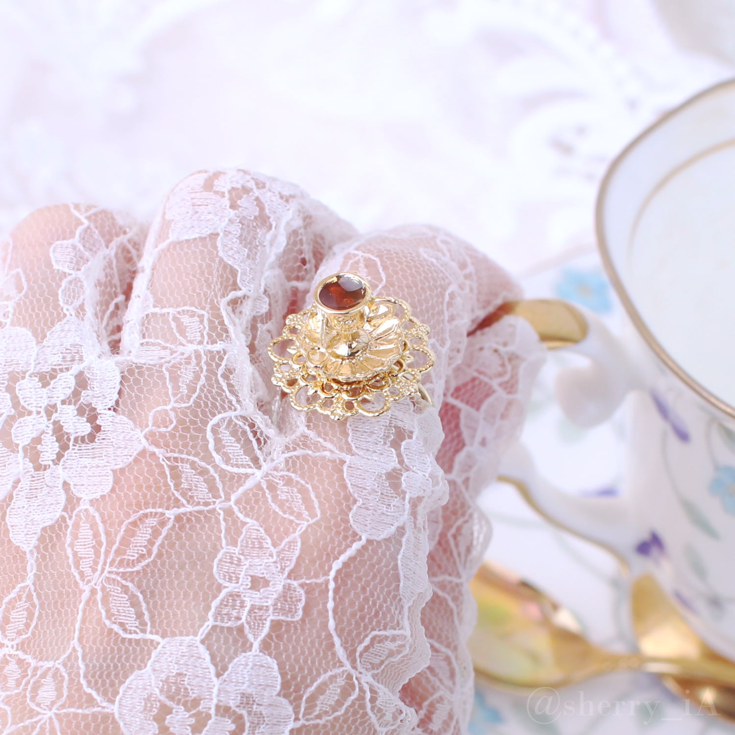 『不思議の国のアリスのお茶会 耳飾り』に合わせて制作したティーカップモチーフのリングです。