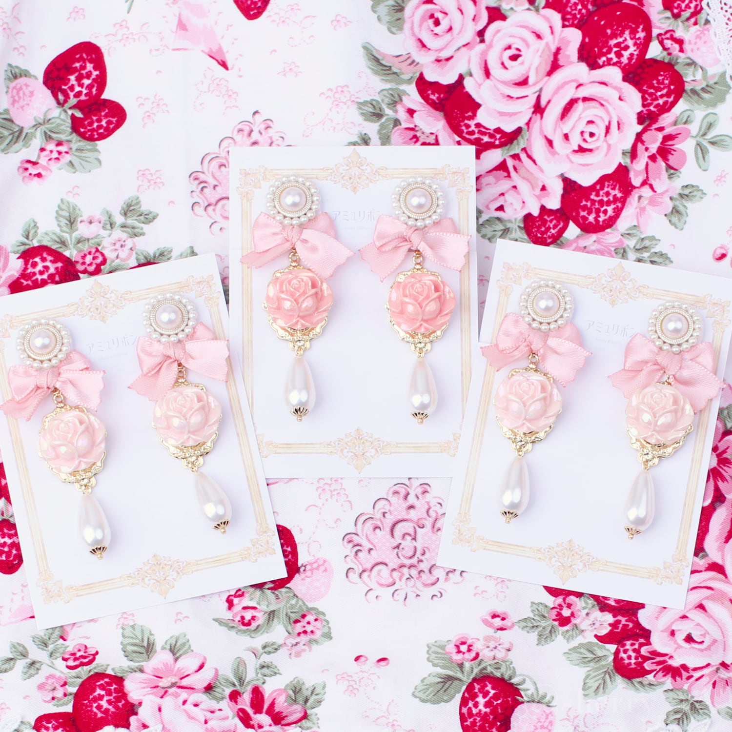 華やかさと可愛らしさ、まるでロココな薔薇庭園のようなアクセサリーを目指して作ってみました。