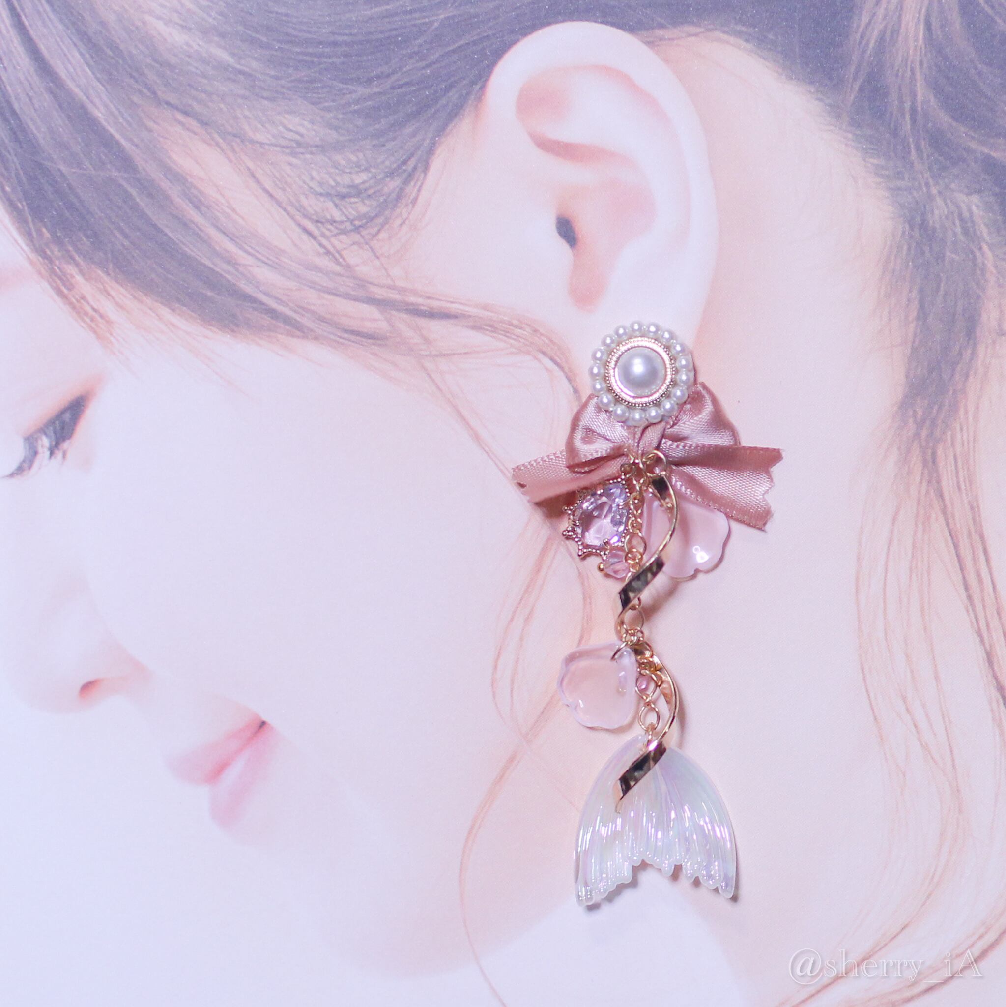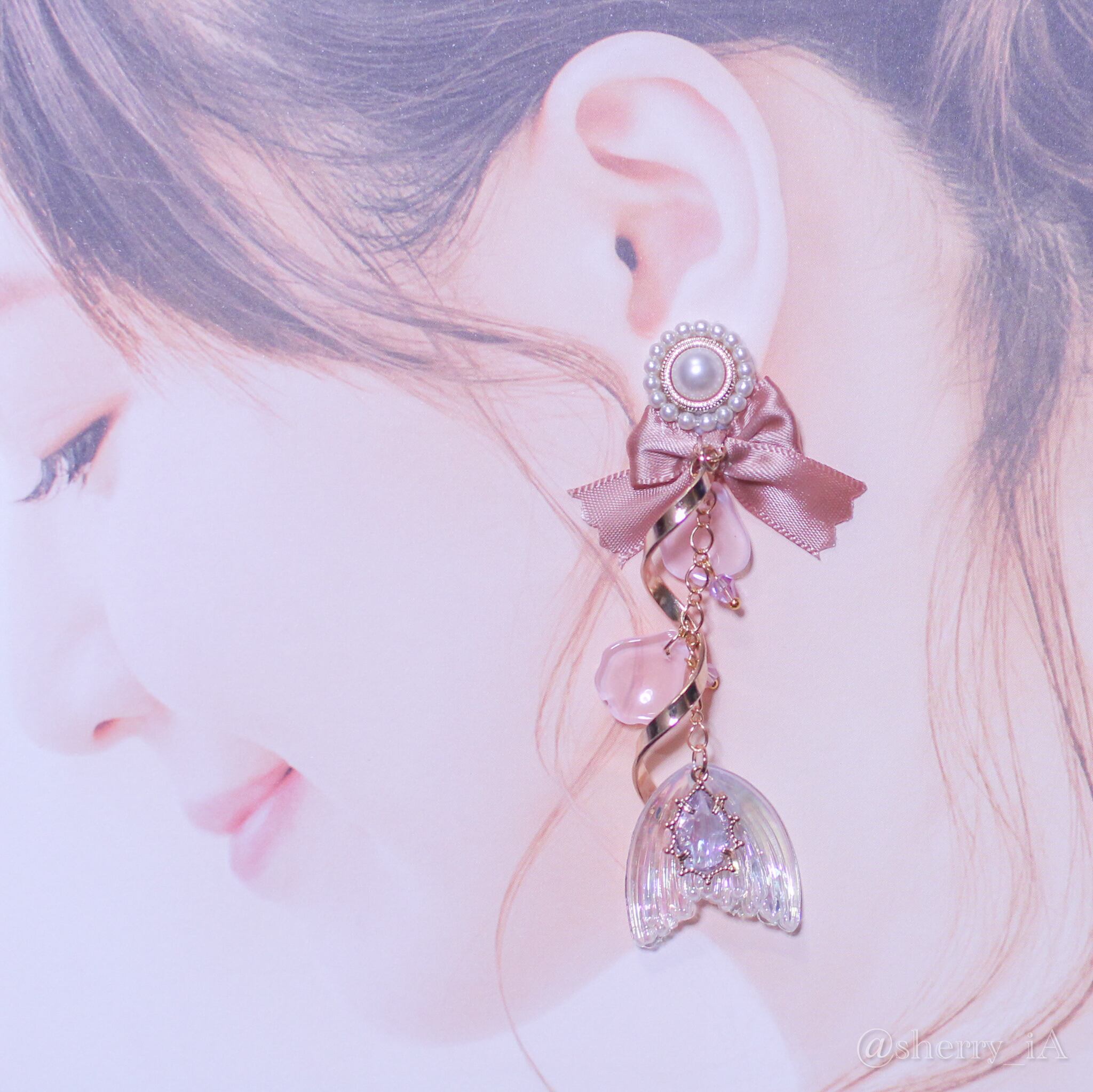 優しい桜色と煌めきたっぷりのマーメイドの耳飾りで、可憐な可愛さを身に纏ってみませんか?