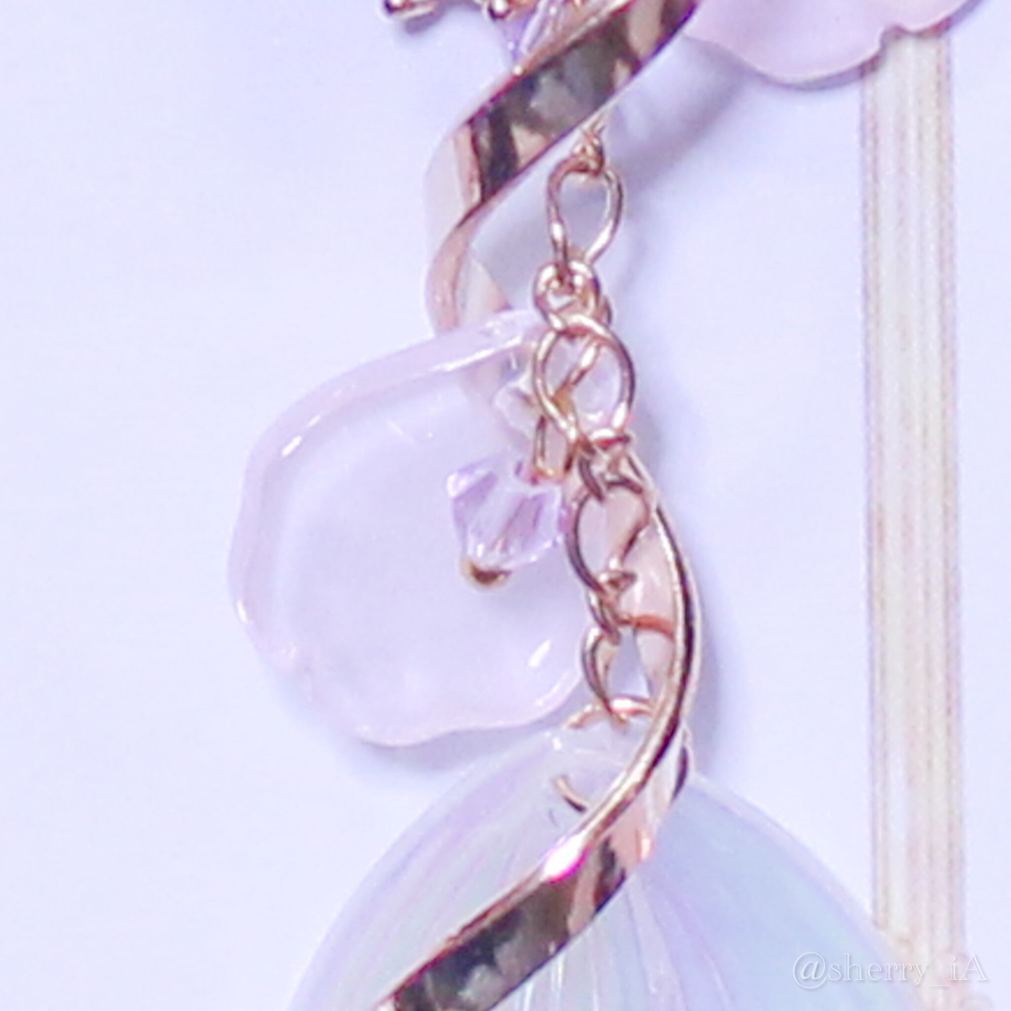 優しい色味のピンクと煌めきが耳元を飾り、桜貝のように可愛らしいアクセサリーが完成しました?