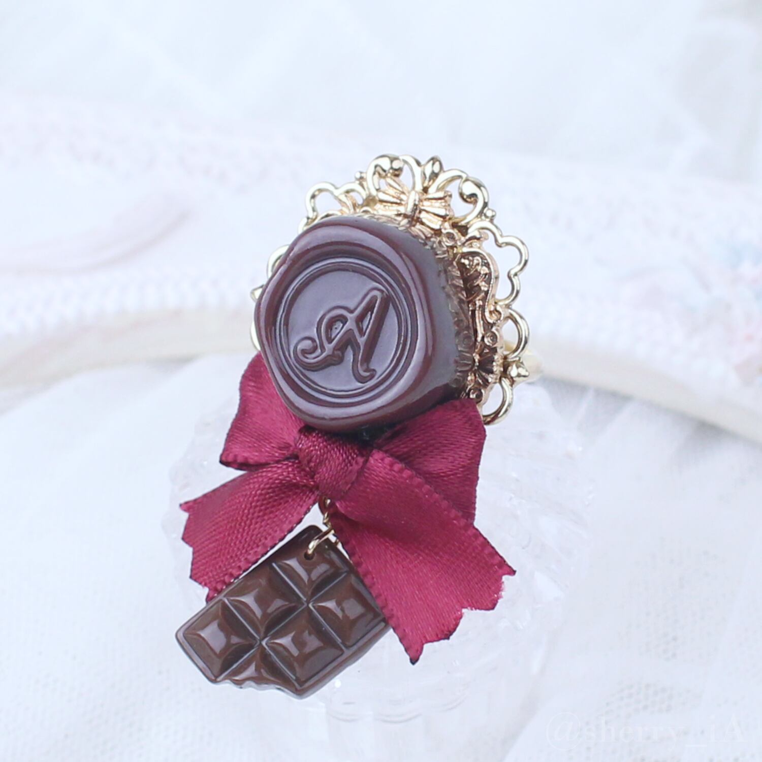 ロマンスチョコリング クラシカル【ロリィタ/ロリータ リボン バレンタイン チョコレート フェイクスイーツ ショコラ シーリングワックス シーリングスタンプ 指輪】